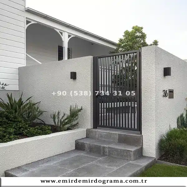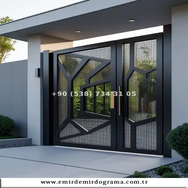 Demir bahçe kapısı modelleri, özellikle modern mimariyi ve net çizgileri tercih eden mülk sahipleri için en ideal çözümdür. Ferforjenin yoğun sanatsal işçiliğinin aksine, bu modellerde fonksiyonellik ve minimalist estetik ön plana çıkar. Genellikle sağlam demir profiller, yatay veya dikey çubuk tasarımları ya da lazer kesim desenli metal saclar kullanılarak üretilirler. Bu yaklaşım, hem dışarıdan görünürlüğü sınırlayarak mahremiyet sağlar (özellikle sac kaplamalı modeller) hem de çağdaş villa, site veya apartman girişlerine sade ve güçlü bir karakter kazandırır.